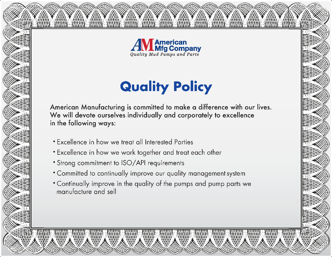 American Manufacturing is committed to make a difference with our lives. We will devote ourselves individually and corporately to excellence.